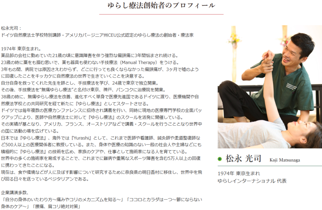 ゆらし療法は手技療法家 松永光司 によって体系化された療法です。