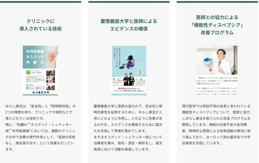 ゆらし療法は、医療機関との協力のもと研究や臨床が進められています。